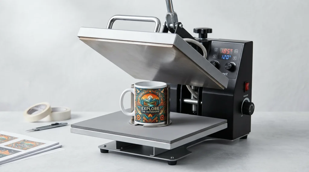 Bayangkan kamu mencetak desain ke media sublimasi untuk mug. Tanpa tekanan yang tepat, kertas dan permukaan mug tidak punya kontak yang merata, sehingga transfer jadi tidak stabil dari bagian ke bagian. Hasilnya bisa ada area yang warnanya lebih pudar, atau detail yang terlihat kurang tajam. Jadi, fungsi pertama mesin press adalah memastikan kontak merata supaya proses pemindahan berlangsung konsisten.