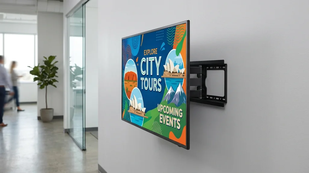 Bayangkan Anda sedang masuk ke sebuah toko atau kantor, lalu layar digital di dinding menyala rapi menampilkan promo atau informasi penting. Warnanya tajam, posisinya pas, dan kabelnya tidak kelihatan berantakan. Semua orang melihat pesannya jelas, bukan terganggu karena layar terlihat miring atau terasa “goyang”.