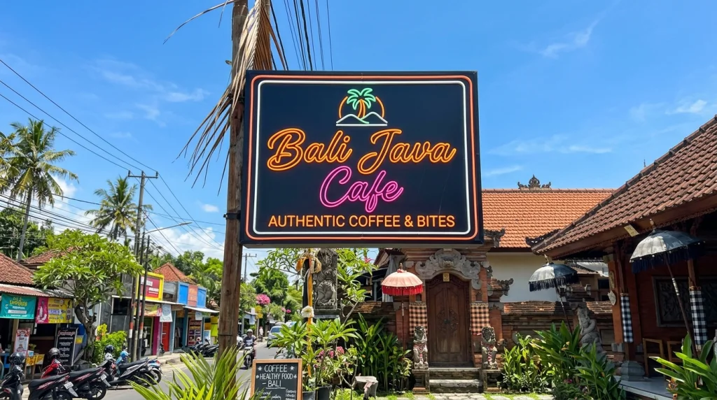 Neon box adalah media signage berbentuk kotak atau papan yang menyala dari dalam untuk menampilkan logo, nama usaha, atau pesan promosi. Tujuan utamanya sederhana: supaya identitas bisnis terlihat jelas, terutama saat kondisi terang mulai berkurang. Contohnya, nama kafe dengan huruf besar yang tampak menyala di depan pintu masuk.