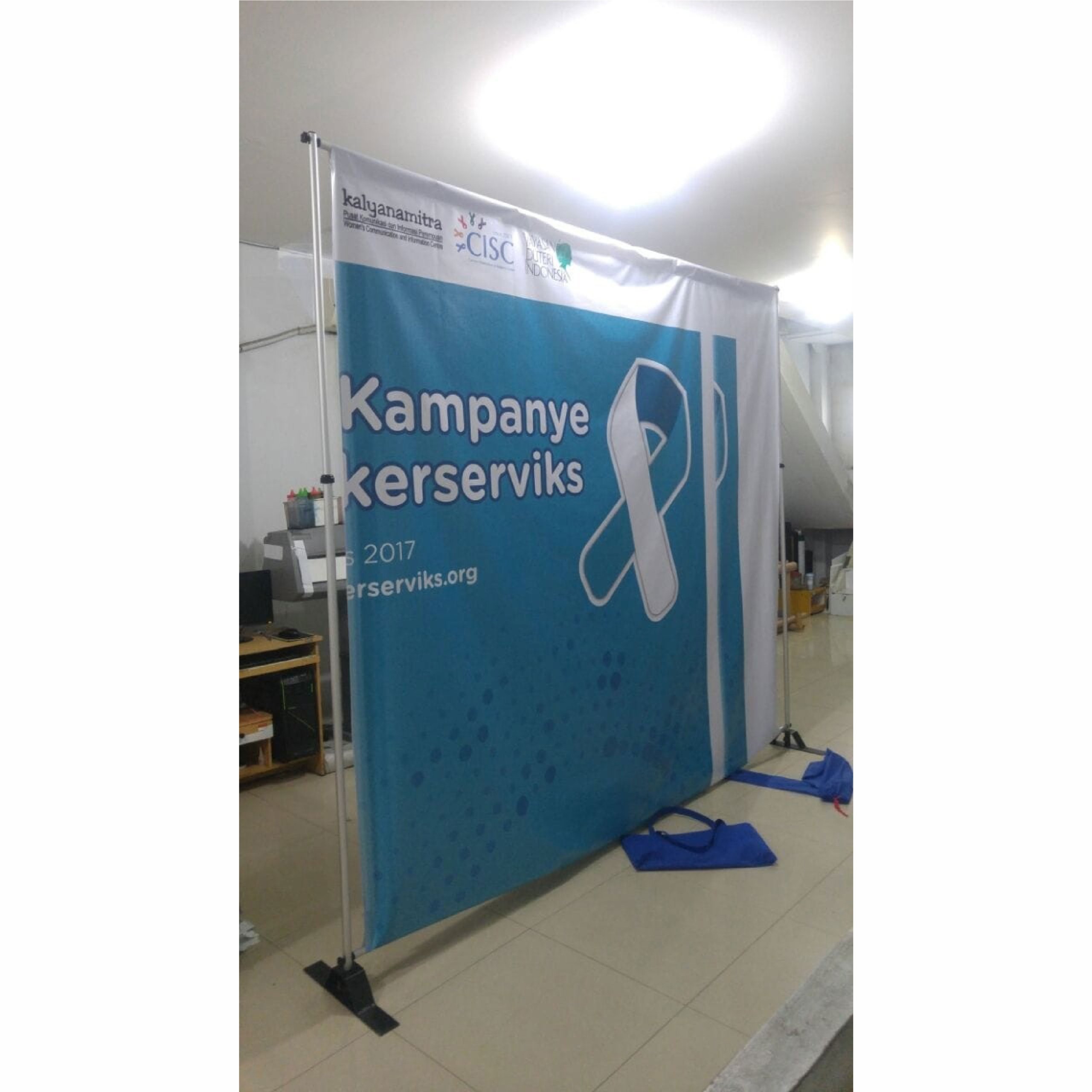 Giant Banner Backdrop dengan rangka Aluminium dan Kaki Tapak Besi Berbobot adalah pilihan ideal untuk mendukung acara Anda seperti Seminar, Pameran, Pernikahan, atau Sesi Fotografi. Salah satu jenis Backdrop yang populer adalah Backdrop dengan rangka Aluminium dan Kaki Tapak Besi.
