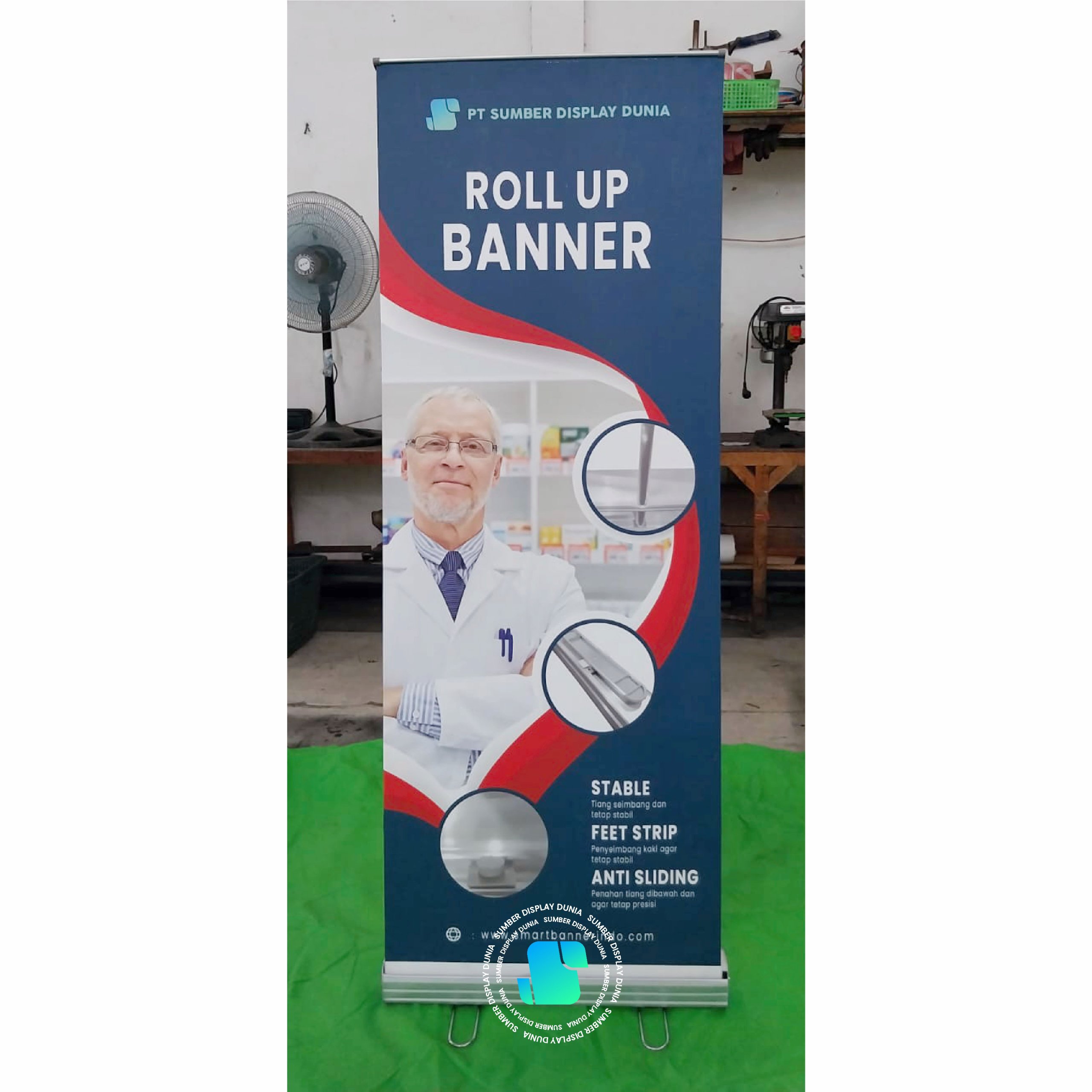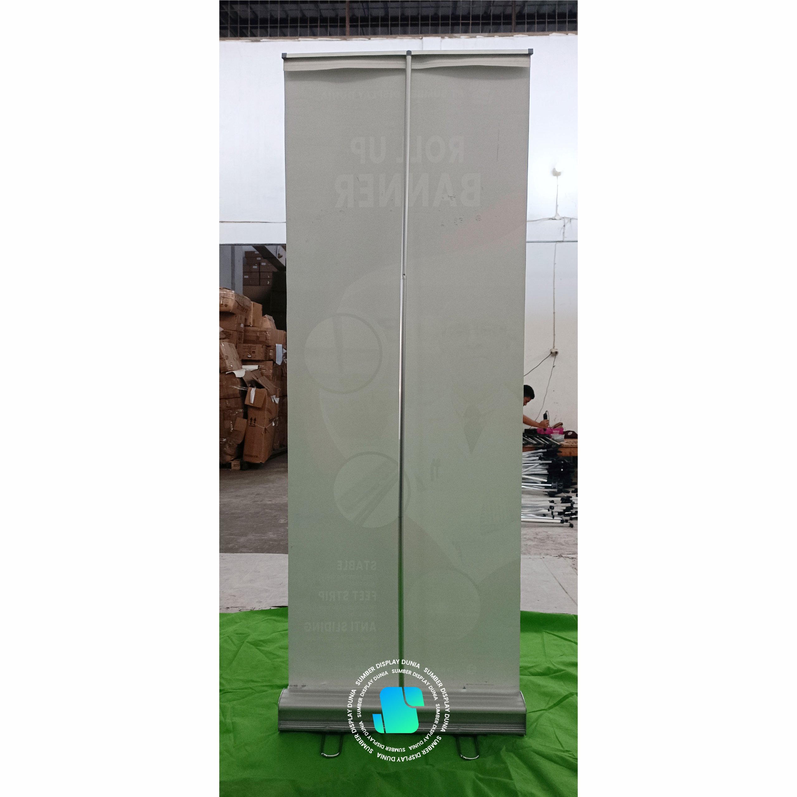 Roll Up Banner Stainless Premium Import – S Display dengan Kaki Stainless.