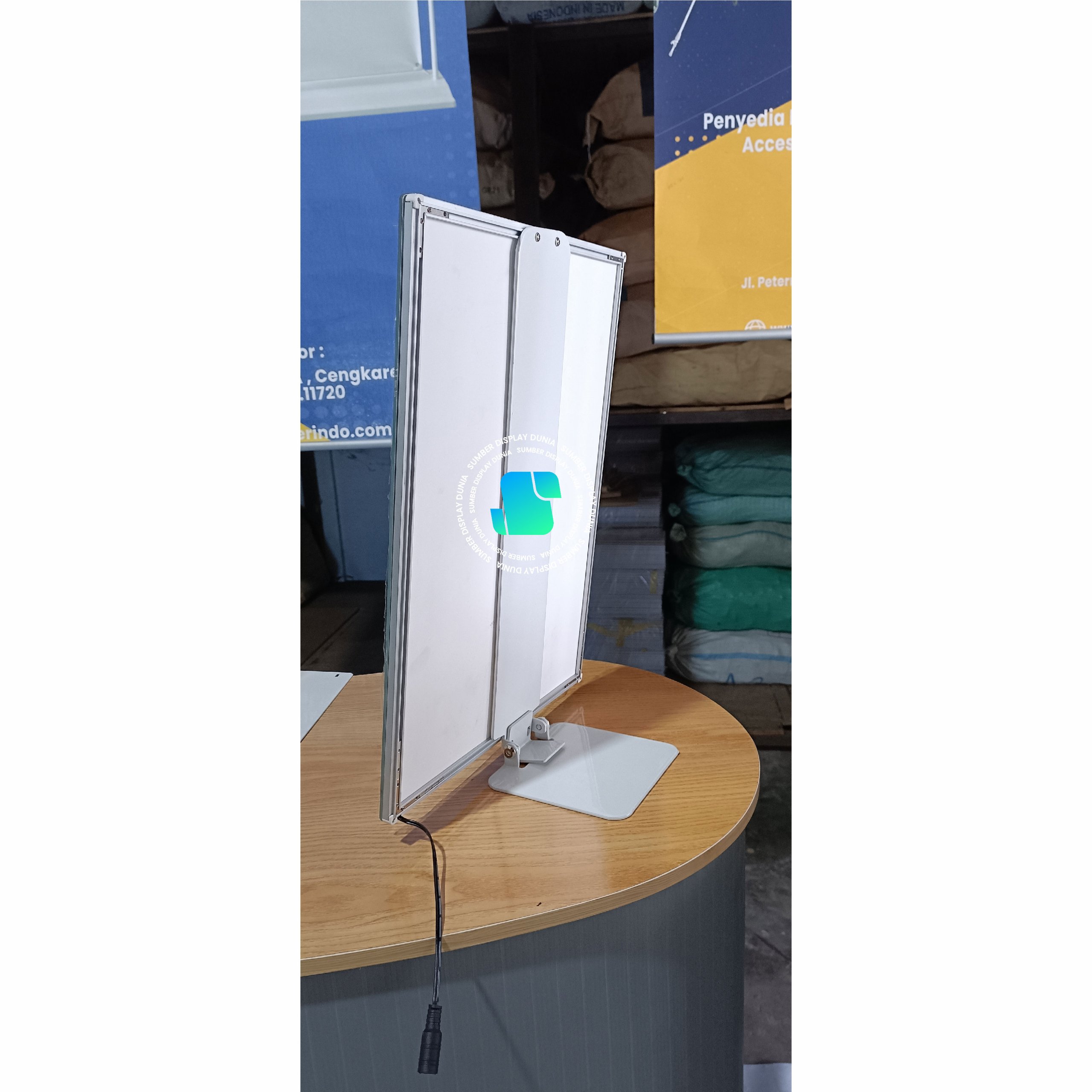 Dengan menggunakan Desktop Stand dirancang untuk menopang Slim Lightbox dengan sudut yang dapat diatur.