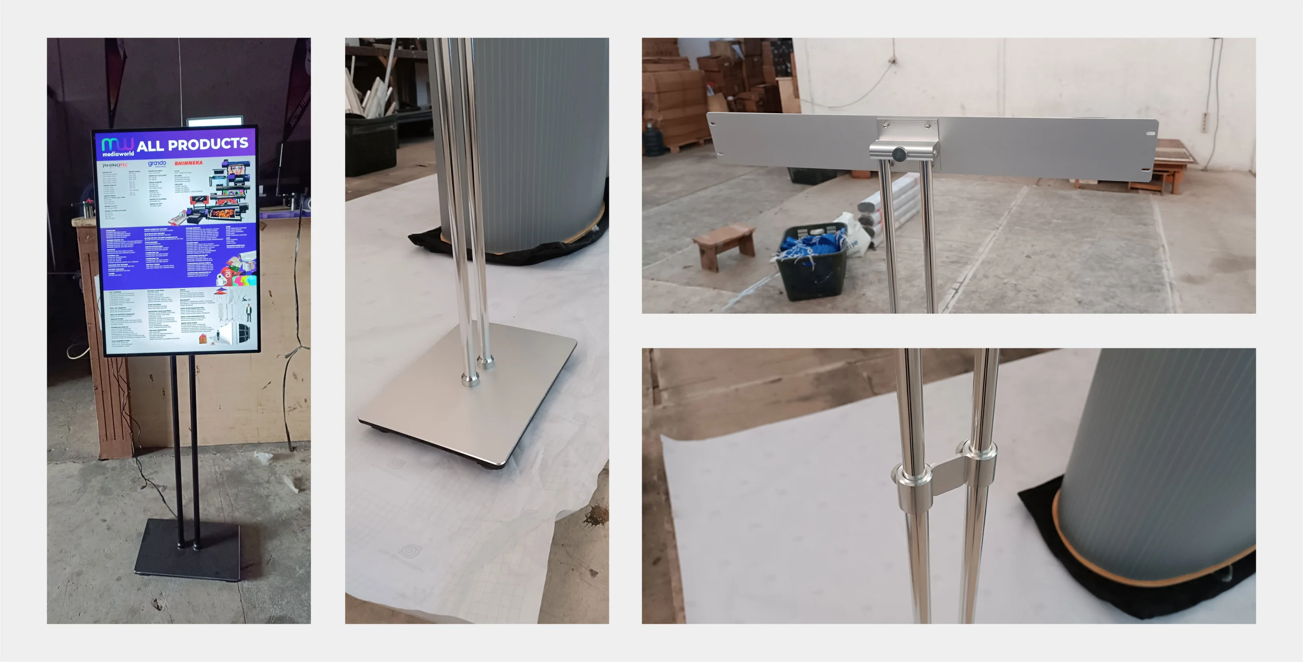 Ada 2 model Standing Pole untuk Slim Lightbox, yaitu Single Pole (hanya 1 tiang tegak lurus) dan contoh gambar diatas adalah Double Pole (2 tiang tegak lurus).